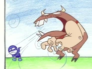 Bully Nerd comes back shortly after, resulting in a chase. Rudy uses his chalk to draw stairs over a cliff, ultimately jumping in Bathtub Granny's bathtub to escape. However, they soon leave when Bully Nerd catches up to them, with Rudy drawing a shark in Granny's bathtub to distract Bully Nerd. This works for a while, but soon enough Bully Nerd is back to focusing on them. Rudy then uses his chalk to draw a cage, but Bully Nerd breaks it with ease. As a last ditch effort, Rudy and Snap try flinging Bully Nerd out of ChalkZone through the portal to the regular world, but it only manages to hit his chin. However, the force is strong enough to return Rudy to the regular world.