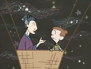 However, Chalkzilla eventually manages to rip the pavement off, causing Rudy and Snap to run away. Rudy uses his chalk to make a hot-air balloon, accepting that Chalkzilla is too strong to defeat on his own. He uses the balloon in an attempt to find its creator. When Rudy draws a circle into the real world, he finds a Chinese woman upset about her work being washed away. Rudy introduces himself, while the woman states her name is Ming Lan. She asks if Rudy is a magician, to which he replies to a chalk artist. As she was responsible for drawing the dragon, Rudy takes her with him to ChalkZone.
