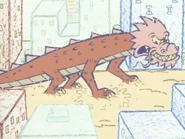 Once the Chalk Rain has cleared, the sidewalk chalk starts turning into what it was: a large dragon. It roars at two people on a rollercoaster, with the Zoners running away from the creature. Snap explains to Rudy that the dragon is Chalkzilla, the former piloting an airplane and telling Rudy to "hop on." Snap uses the plane's fuel to blind Chalkzilla temporarily. After Snap says, "stick it to 'em," Rudy gets an idea: drawing a bottle of glue under Chalkzilla, who can't move after the fact.