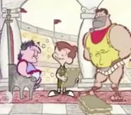 Rudy sees that it's a chalk version of ancient Rome, and soon sees a lion trying to maul a man as many spectators watch. Rudy hides behind a vase, which the man jumps into it. As the man runs away, the lion starts targeting Rudy as Snap watches from the crowd. Rudy uses his chalk to prevent the lion from attacking him. The lion continues running after him, with Snap also running towards Rudy in the stands. Snap gives Rudy some advice, claiming it's like a lion tamer at the circus.